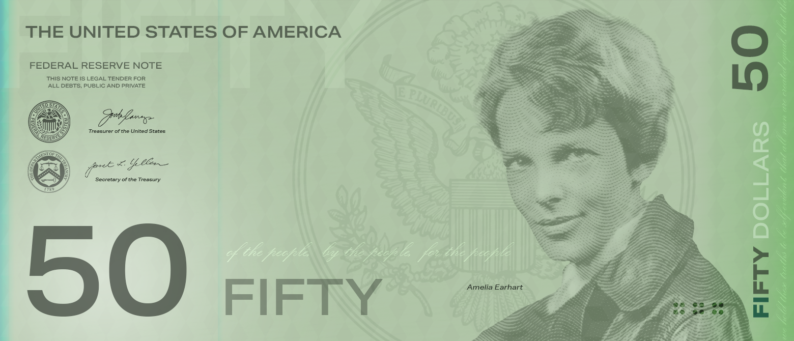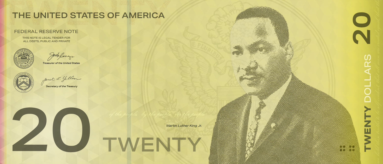 Reimagining U.S. currency with an emphasis on modernity: iconic figures from throughout U.S. history representing diverse backgrounds, equitable geographic distribution of American landmarks, and additional accessibility and security features